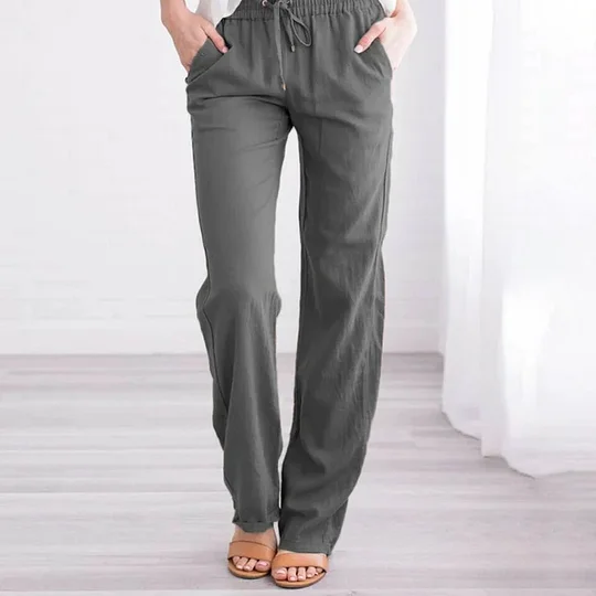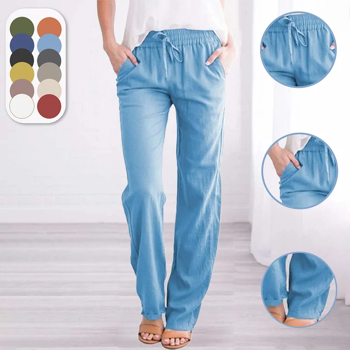 Weatsde Einfarbige, gerade Hose für Damen aus Baumwolle und Leinen
